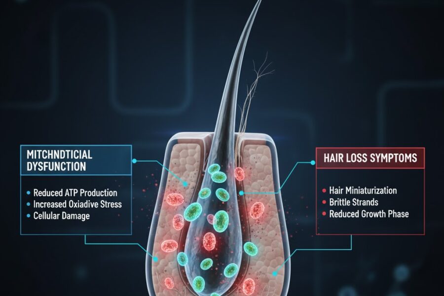 Mitochondrial Dysfunction and Hair Loss: Could Cellular Energy Be the Hidden Culprit? News Mitochondrial Dysfunction and Hair Loss: Could Cellular Energy Be the Hidden Culprit? When it comes to hair loss, the conversation typically centers around hormones, inflammation, genetics, or…developerSeptember 23, 2025